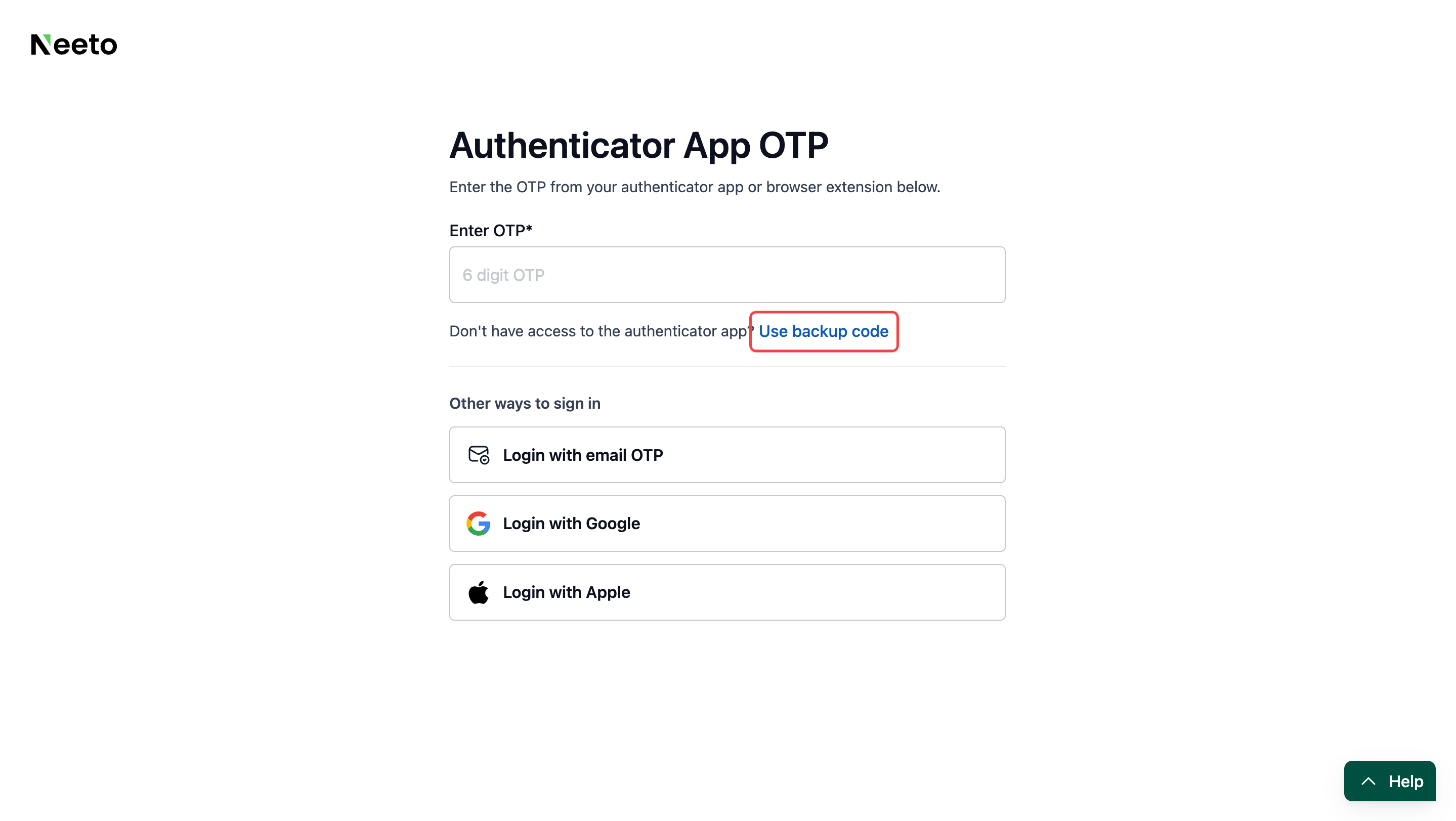 If you can't access your authenticator app, you can use one of the backup codes you saved during setup.